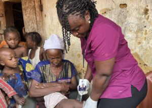 Nurse Saffie administering a Malaria Vaccine